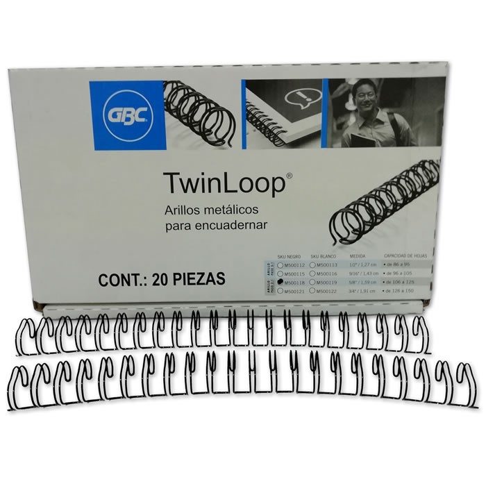 ARILLO TWIN LOOP DOBLE METALICO 5/8″ PULGADA COLOR NEGRO MARCA GBC MODELO M500118 CON 20 PIEZAS