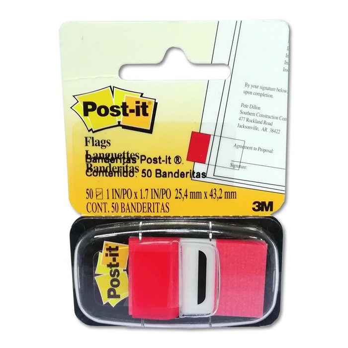 BANDERITAS ADHESIVAS SEÑALIZADORAS DE PAGINA MEDIDA 25.4 X 43.2 MM DE PLASTICO COLOR ROJAS DE 50 HOJAS MODELO 680-1 3M POST-IT