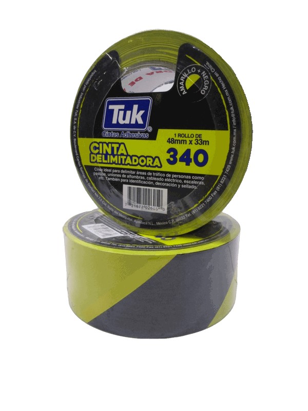 CINTA ADHESIVA DELIMITADORA DE AREAS TUK COLOR AMARILLO CON NEGRO MEDIDA 48MM X 33 MTS MODELO 340