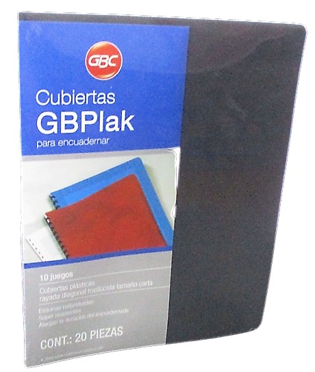 CUBIERTA PLASTICA PARA ENGARGOLAR GBPLAK, MODELO MX01871, TAMAÑO CARTA, COLOR HUMO RAYADA DIAGONAL, CON 20 PIEZAS