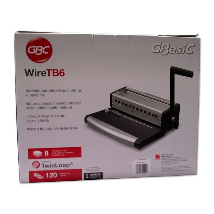 ENGARGOLADORA GBC MODELO WIRETB6 PARA ARILLO METALICO MX0030, CAPACIDAD DE ENGARGOLADO 120 HOJAS CAPACIDAD DE PERFORADO O HOJAS TAMAÑO CARTA GUIA DE ELECCION DE MEDIDA E INDICADOR DE PERFORADO