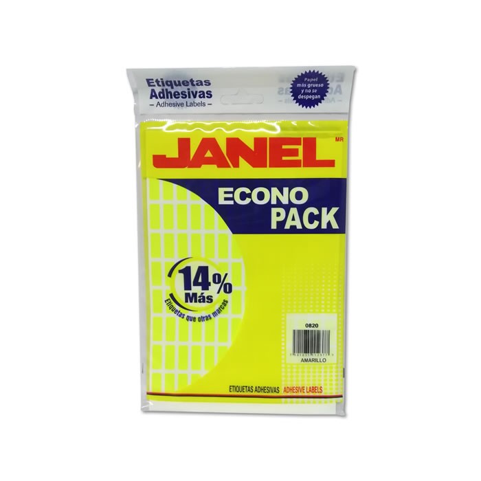 ETIQUETA AMARILLO JANEL No 4 MEDIDA 08MM X 20MM CON 1008 ETIQUETAS ECONO PACK E060820204