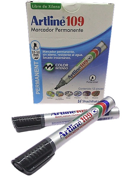 MARCADOR PERMANENTE ARTLINE, COLOR NEGRO, BARRIL DE PLASTICO, PUNTA DE CINCEL, SECADO RAPIDO, MODELO EK-109N