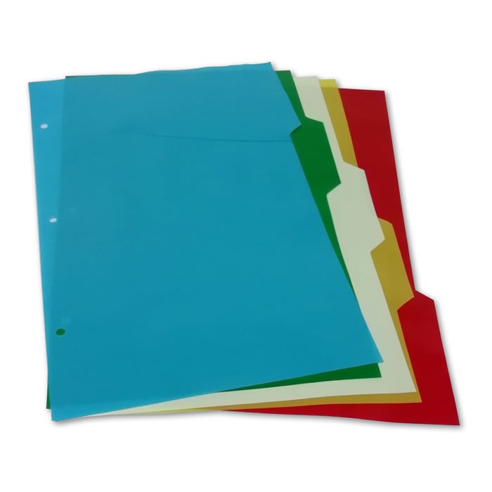 SEPARADORES DE PLASTICO TAMAÑO OFICIO CON 5 SEPARADORES DE COLORES 3 PERFORACIONES